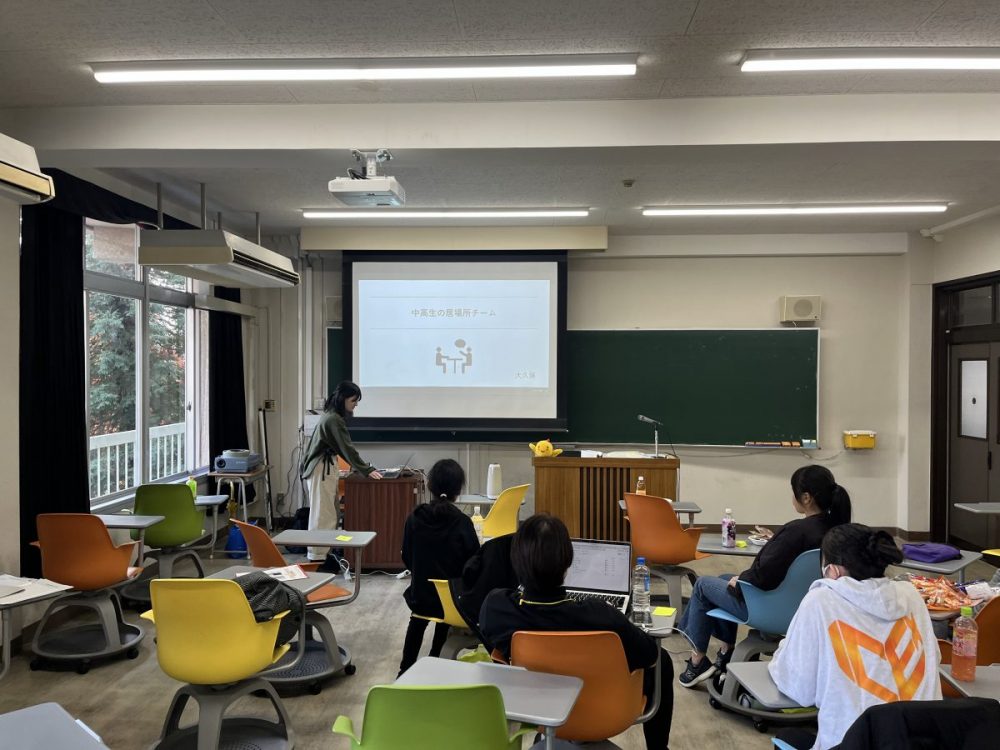 中高生の居場所をテーマにしたプレゼンテーションでは、「キッカケカフェ」というコンセプトが示され、何かをやってみたい中高生が交流する場を作ることで、出会いから新しいヒントが見つかるのではないかという仮説が語られました。ただ、「やりたいことがない」という若者もいるので、「やりたいことがなければいけない」という思い込みはしないようにという話もでていて、非常に興味深い内容でした。